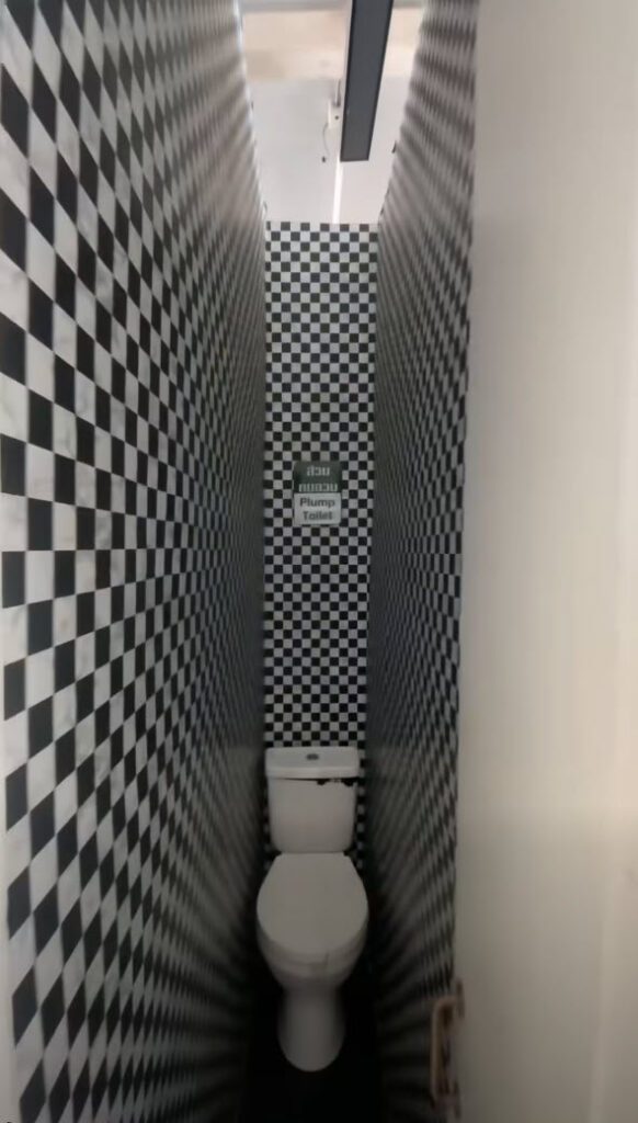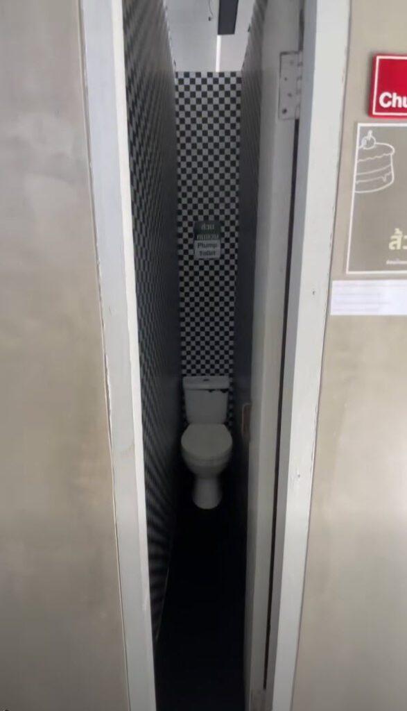 ห้องส้วมคนอวบ จะเข้ายังไงเนี่ย ฮาๆ ชาวเน็ตบอกว่าต้องถอยหลังเข้าถึงจะเข้าได้ หันหน้าเข้าอาจจะกลับตัวไม่ได้ ที่สุดไปกว่านั้น ยอมใจช่างที่ติดตั้งมากๆ เก่งมาก