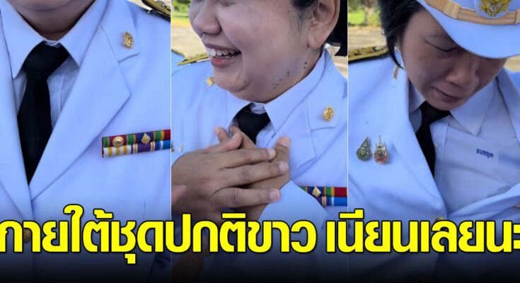 ล่าสุด ทางด้านผู้ใช้ TikTok @krufunglam ได้โพสต์วิดีโอคลิปเมื่อข้าราชการ ใส่ชุดปกติขาวมาร่วมงาน แต่เพื่อนสังเกตดูเสื้อด้านไหนว่ามันแปลกๆ นะ พอเปิดดูเท่านั้นแหละ เนียนเลยนะ โดยได้โพสต์ระบุว่า…..
