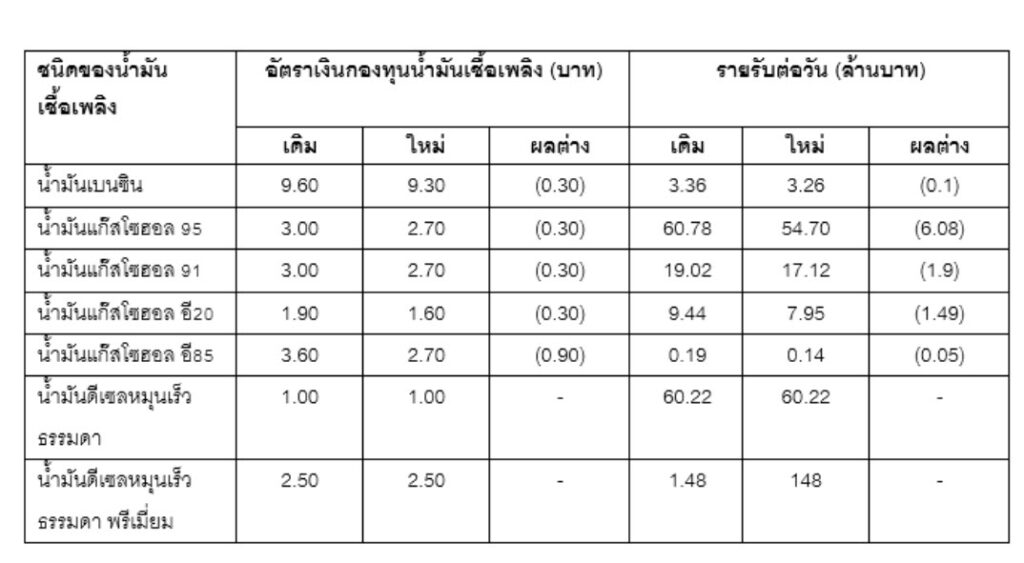 ทั้งนี้ ฐานะกองทุนน้ำมันฯ ณ วันที่ 19 ตุลาคม 2568 ติดลบอยู่ที่ 14,754 ล้านบาท แบ่งเป็นบัญชีน้ำมันบวก 26,910 ล้านบาท และบัญชี LPG ติดลบ 41,664 ล้านบาท ขณะที่รายรับจากกลุ่มน้ำมันดีเซลยังคงอยู่ที่ 61.70 ล้านบาทต่อวัน ส่วนรายรับจากน้ำมันเบนซินจะลดลงเหลือประมาณ 83.17 ล้านบาทต่อวัน