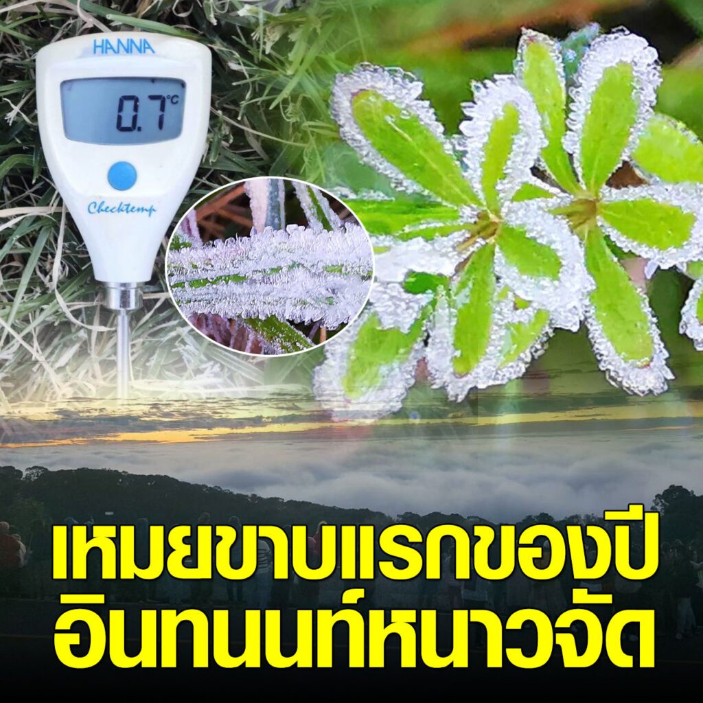 อากาศวันนี้ (24 พ.ย.68) หนาวสะท้าน ยอดดอยอินทนนท์ลดฮวบเหลือ 4 องศาเซลเซียส พร้อมเหมยขาบแรกของปีให้ได้ลุ้นกันตั้งแต่เช้า บรรยากาศสุดขาวโพลนบนยอดหญ้าแทบแตะ จุดเยือกแข็ง สร้างความฮือฮาให้กับนักท่องเที่ยวที่ขึ้นไปสัมผัสลมหนาวกันแบบสดๆ