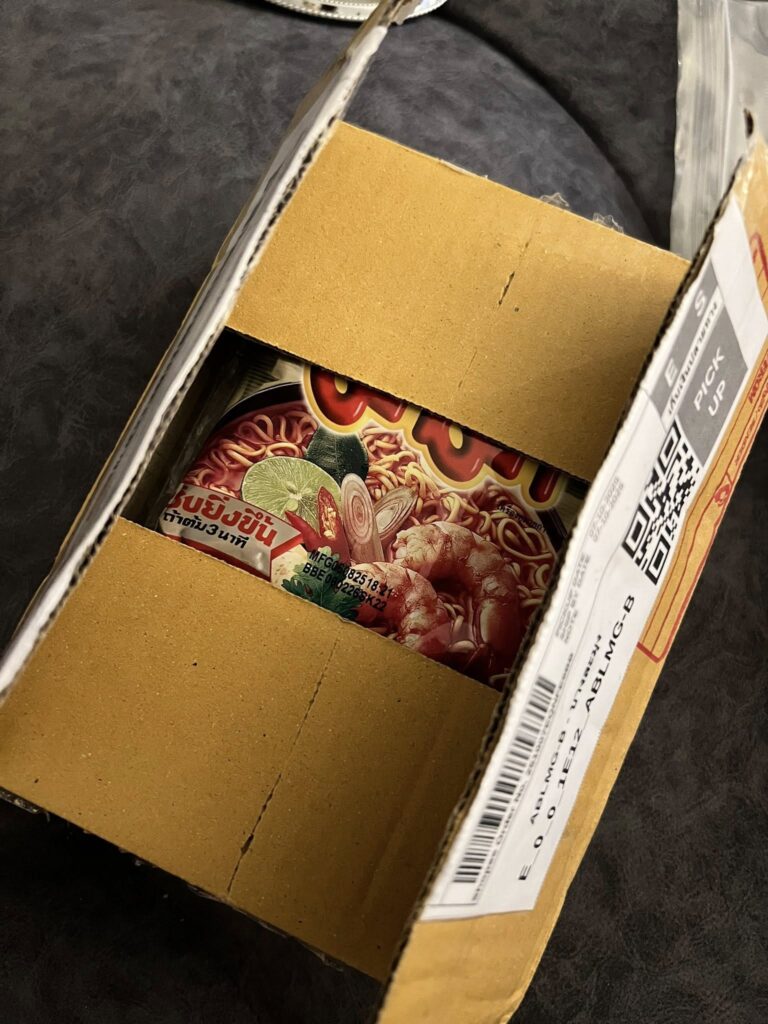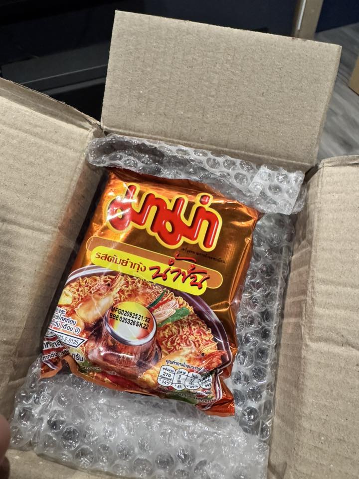 ร้านก็ใจดีแถมมาม่ามาไม่บอกลูกค้าก่อน แกะกล่องพัสดุออกดูก็นึกว่าโดนมิจฉาชีพซะแล้ว ได้มาม่ามาแทน แต่แกะชัดๆ โล่งอกไปเลย ทีหลังบอกลูกค้าบ้างก็ได้นะ ฮาๆ