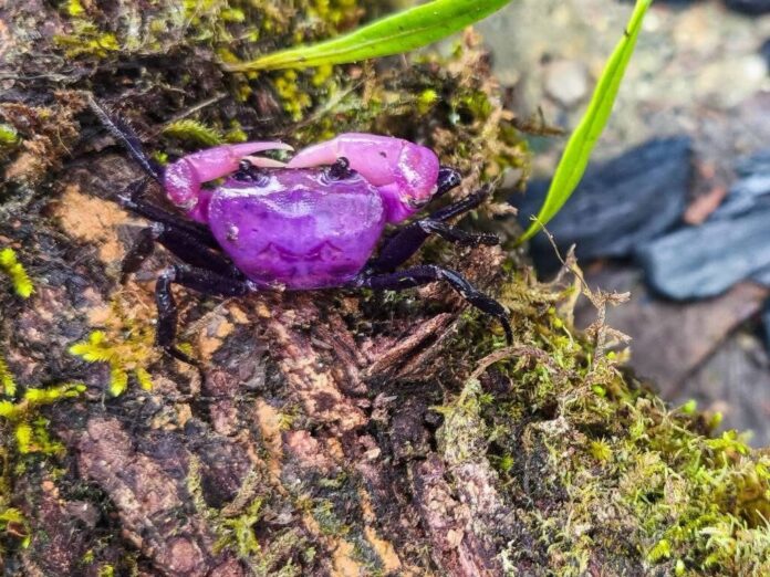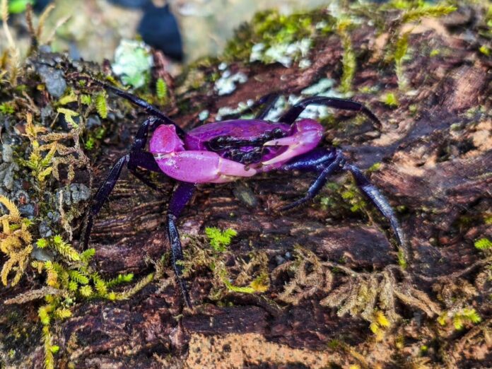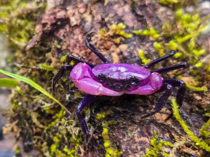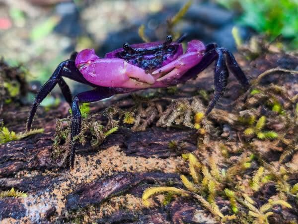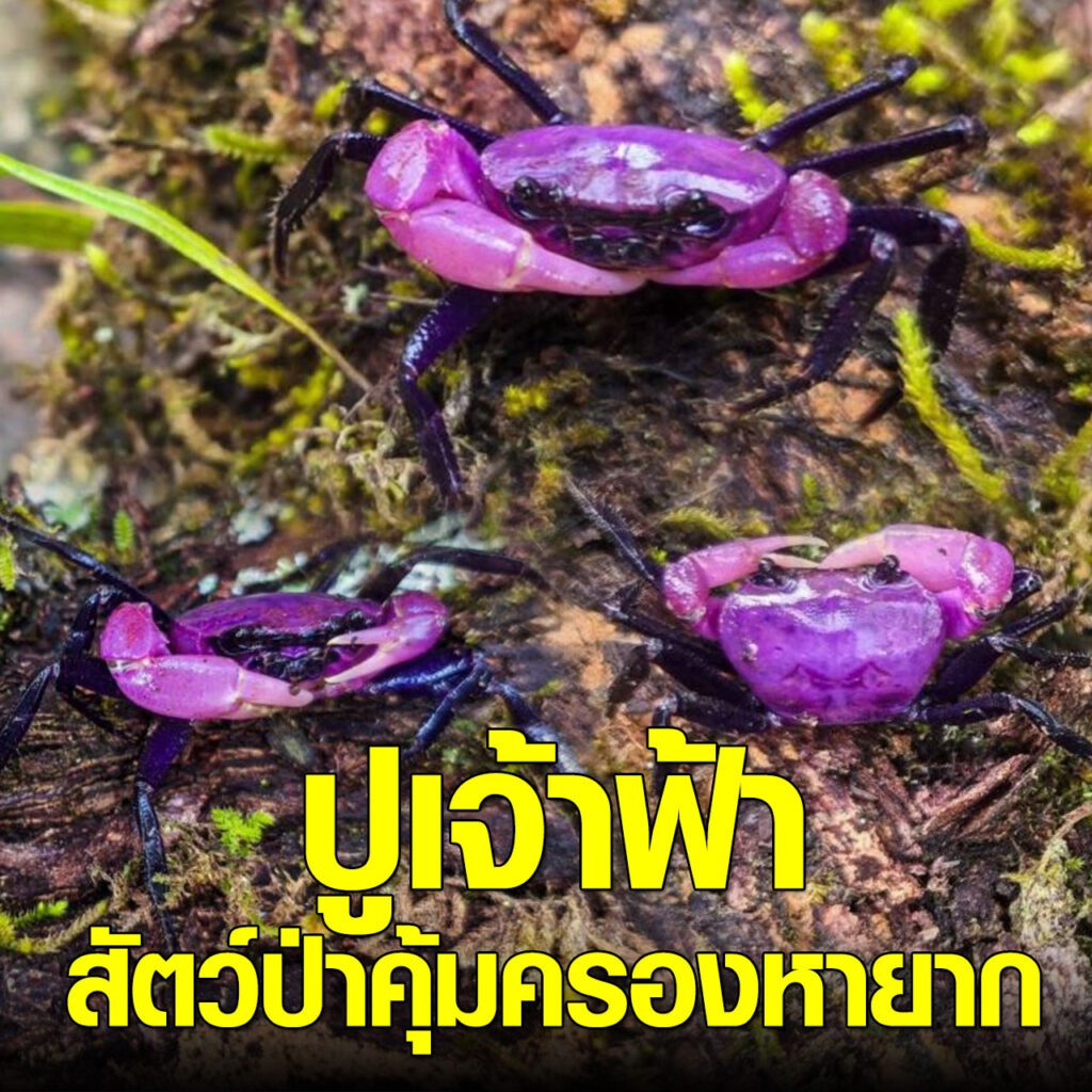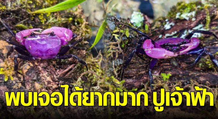 สัตว์ป่าคุ้มครองที่หายากมาก ปูเจ้าฟ้า พบกลางป่าลึกแก่งกระจาน สีม่วงสดสวยมาก