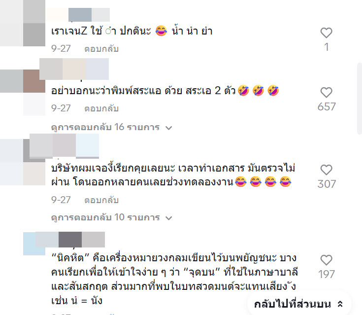 อย่างล่าสุด ทางด้านผู้ใช้ TikTok @neonwarks ได้โพสต์วิดีโอคลิปน้องในที่ทำงานพิมพ์สระอำแบบมิติใหม่ เพิ่งรู้ว่ามีคนพิมพ์แบบนี้ด้วย หรือว่าเด็ก Gen Z เขาพิมพ์สระอำแบบนี้ คือการพิมพ์ นิคหิต แทน สระอำ แล้วก็พิมพ์ สระอาต่อ เป็นแบบไหนนั้นตามไปดู