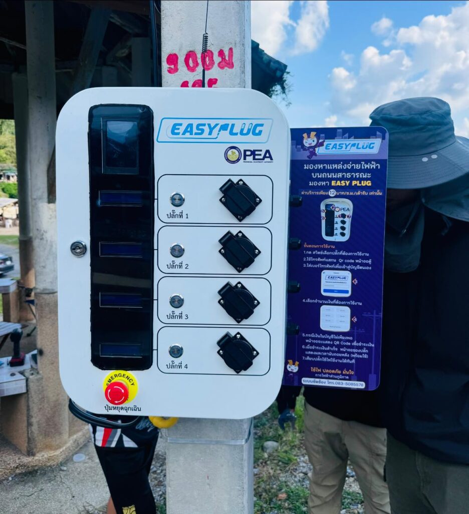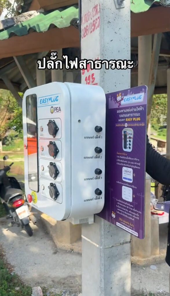 ปลั๊กไฟสาธารณะ Easy Plug คือจุดจ่ายไฟที่ใช้เทคโนโลยี QR Code เพื่อให้ผู้ใช้สแกนจ่ายเงินและใช้งานได้ทันที
