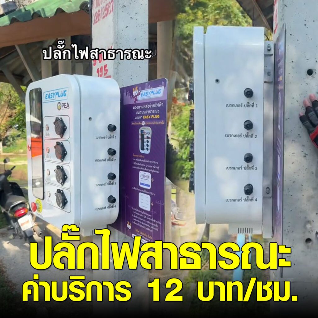 ปลั๊กไฟสาธารณะ Easy Plug นวัตกรรมเต้ารับปลั๊กไฟอัจฉริยะแบบหยอดเหรียญดิจิทัล ที่ออกแบบมาเพื่อให้บริการในพื้นที่สาธารณะ 12 บาท/ชม. ใช้งานได้ง่ายๆ ดีเลย อยากให้มีเยอะๆ