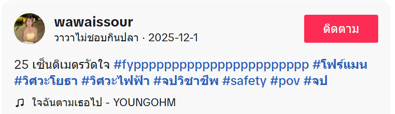 ล่าสุด ทางด้านผู้ใช้ TikTok @wawaissour ได้โพสต์วิดีโอคลิปให้วิศวะตึงตลับเมตรให้ได้ 25 เซนติเมตรพอดีๆ ทดสอบวิศวะที่มีประสบการณ์กว่า 20 ปี มาดูกันว่าจะดึงได้ 25 เซนติเมตรพอดีไหม ไปดู