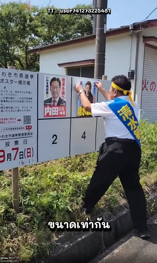 เป็นการติดป้ายหาเสียงที่เป็นระเบียบ และดูแล้วสบายตามากๆ ความเป็นญี่ปุ่น ความเป็นระเบียบมาเป็นอันดับ 1 อยากให้ประเทศไทยจัดระเบียบแบบนี้บ้างจัง