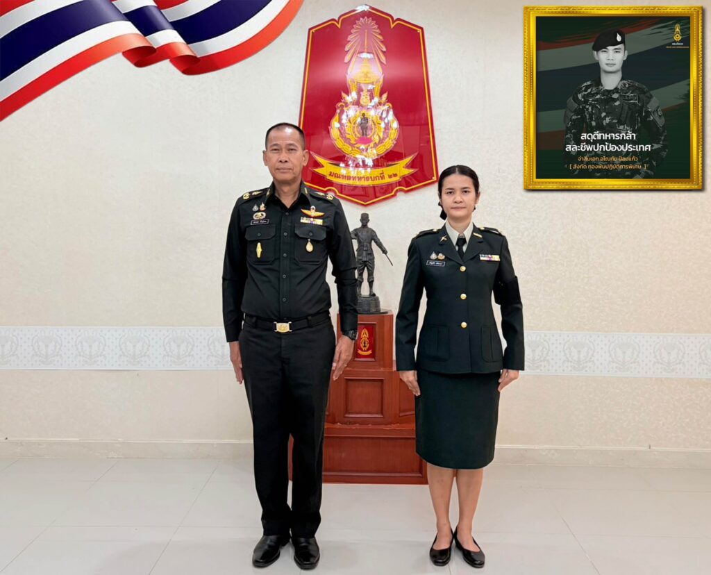 กองทัพบกย้ำหลักการ ไม่ทิ้งใครไว้ข้างหลัง ดูแลครอบครัววีรชนผู้เสียสละเพื่อชาติ ล่าสุด มณฑลทหารบกที่ 22 จังหวัดอุบลราชธานี ได้บรรจุทายาทของทหารกล้าชายแดนไทย-กัมพูชา เข้ารับราชการทดแทน พร้อมประดับยศให้กับภรรยาของผู้เสียชีวิต เพื่อสร้างความมั่นคงในชีวิตและเชิดชูเกียรติของผู้ปกป้องแผ่นดิน