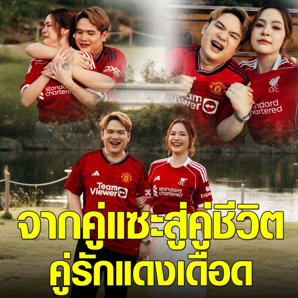 ล่าสุด ทางด้านเพจเฟสบุ๊ก สารคดีชีวิตคู่-เกี้ยวกับเพลง อีกหนึ่งคู่รักที่โด่งดังในโลกโซเชียล แฟนหนุ่มชื่อเกี้ยว เป็นแฟนบอลผีแดง แมนยู ส่วนแฟนสาวชื่อ เพลง เป็นแฟนบอลหงส์แดง ลิเวอร์พูล มักจะมีคอนเทนต์ล้อเรื่องบอลทีมรักกันอยู่บ่อยๆ พร้อมกับชีวิตคู่แบบไม่มีใครยอมกัน ตอนนี้กำลังจะแต่งงาน ได้โพสต์ภาพพรีเวดดิ้ง แน่นอนว่าเป็นเสื้อทีมรักของทั้งคู่ บอกเลยว่าน่ารักมากๆ โดยได้โพสต์ระบุว่า….