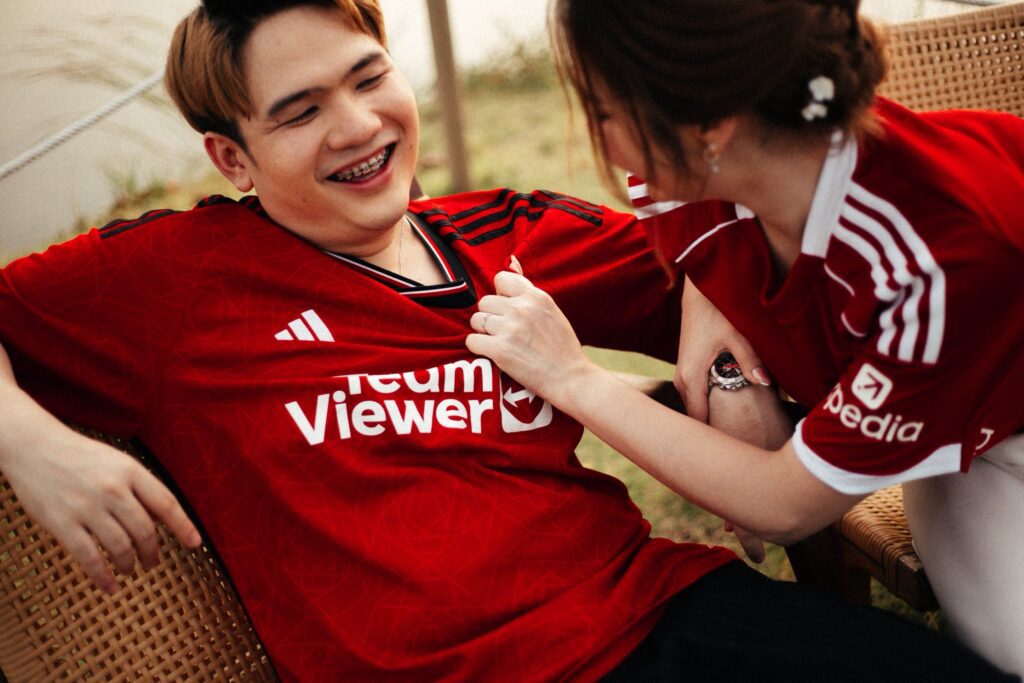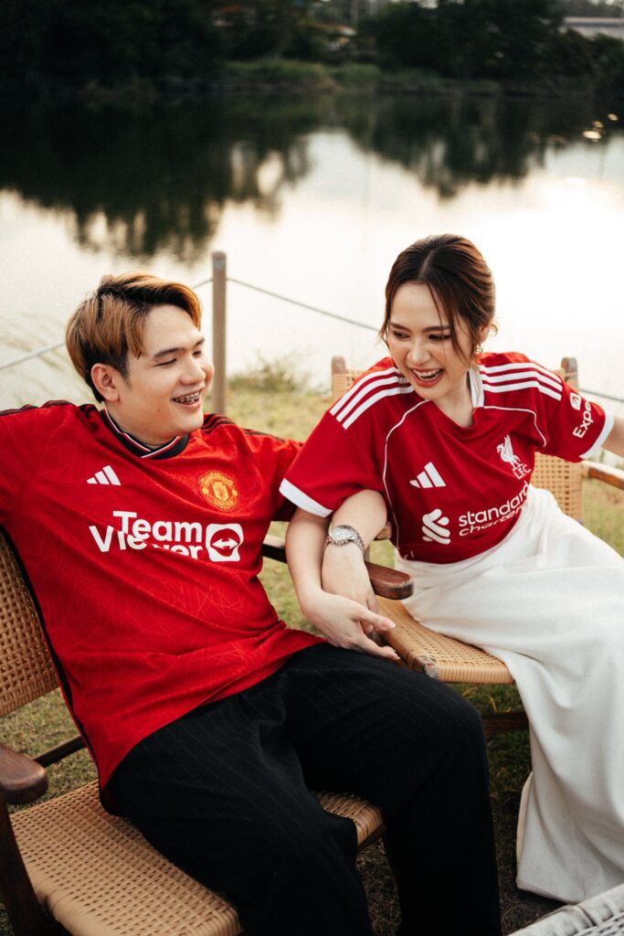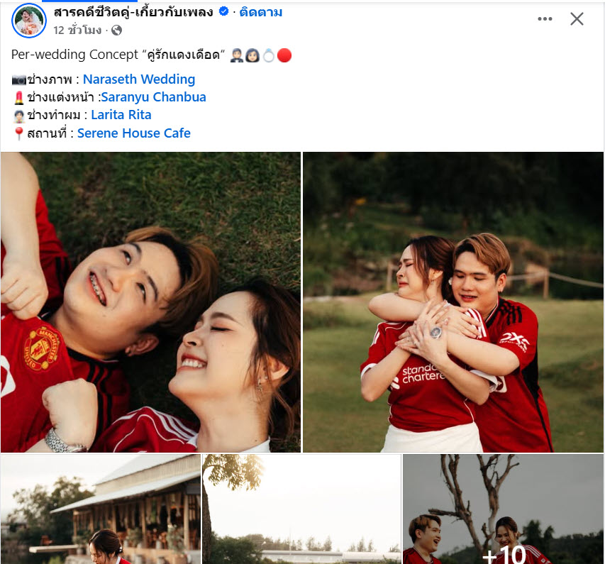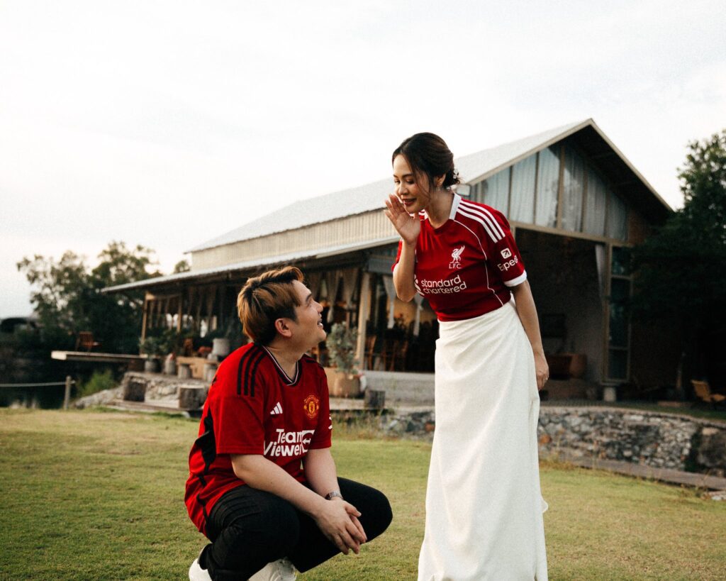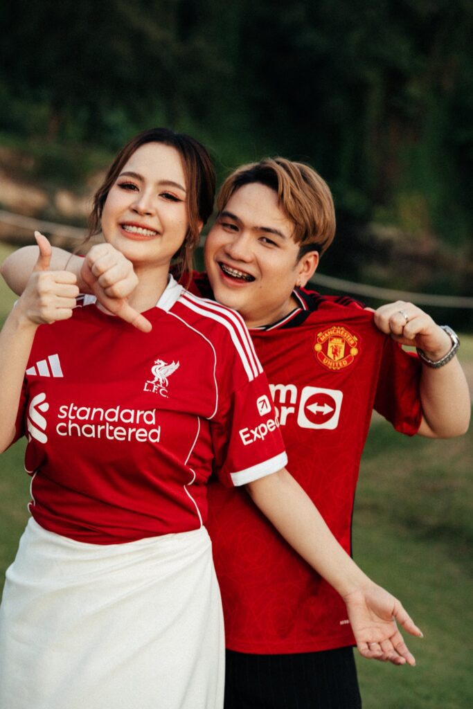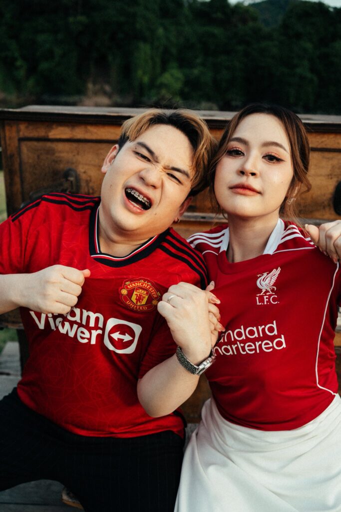 ล่าสุด ทางด้านเพจเฟสบุ๊ก สารคดีชีวิตคู่-เกี้ยวกับเพลง อีกหนึ่งคู่รักที่โด่งดังในโลกโซเชียล แฟนหนุ่มชื่อเกี้ยว เป็นแฟนบอลผีแดง แมนยู ส่วนแฟนสาวชื่อ เพลง เป็นแฟนบอลหงส์แดง ลิเวอร์พูล มักจะมีคอนเทนต์ล้อเรื่องบอลทีมรักกันอยู่บ่อยๆ พร้อมกับชีวิตคู่แบบไม่มีใครยอมกัน ตอนนี้กำลังจะแต่งงาน ได้โพสต์ภาพพรีเวดดิ้ง แน่นอนว่าเป็นเสื้อทีมรักของทั้งคู่ บอกเลยว่าน่ารักมากๆ โดยได้โพสต์ระบุว่า….