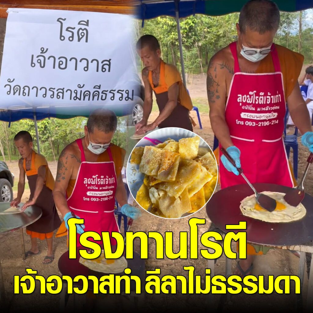เราจะเห็นแต่ญาติโยมที่มาทำโรงทานในงานบุญ แต่ล่าสุด ทางด้านผู้ใช้ TikTok @ ได้โพสต์วิดีโอคลิปโรงทานหนึ่ง เป็นโรงทานของเจ้าอาวาส แล้วสิ่งที่โรงทานนี้ทำแจกคือ โรตี โรตีเจ้าอาวาส ฝีมือในการทำไม่ธรรมดา และน่ากินมาก โดยได้โพสต์ระบุว่า…