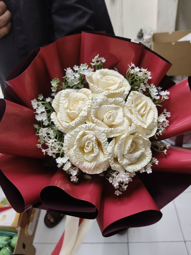 อย่าหาทำนะคะ ช่วยดูกันหน่อยเถอะหรือฉันอาจจะคิดมากไป ลูกค้าสั่งช่อดอกไม้แห้งซึ่งอาจจะหมายถึงดอกไม้ผ้าแต่เอาดอกไม้กระดาษตัวนี้ใส่ให้ลูกค้า คือมีลูกค้ามาติดต่อกับพนักงานหน้าร้านว่าจะเอาดอกไม้มาจัดช่อใหม่ดูแบบและคุยรายละเอียดกันเสร็จ พนักงานที่ร้านเราก็เอาเข้ามาให้เราจัด ฉันเห็นก็ได้แต่เอ๊ะ แต่ก็อาจจะเป็นความประสงค์ของลูกค้าที่อยากจะแกล้งแฟน จัดเสร็จก็ไปเดินออกไปให้เอง