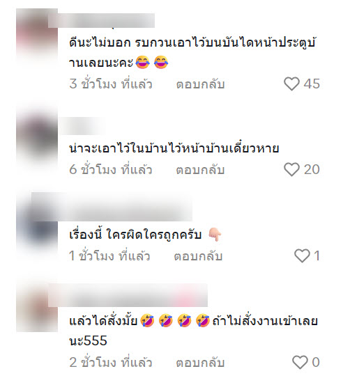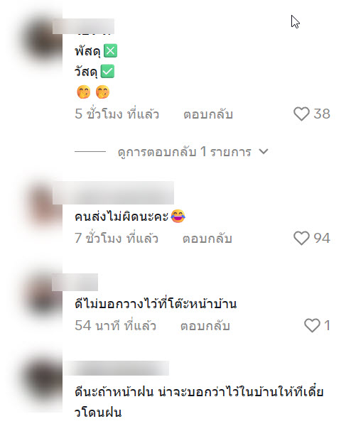 นึกว่าพนักงานส่งพัสดุโทรมา เลยบอกว่าไว้ที่หน้าบ้านเลยค่ะ