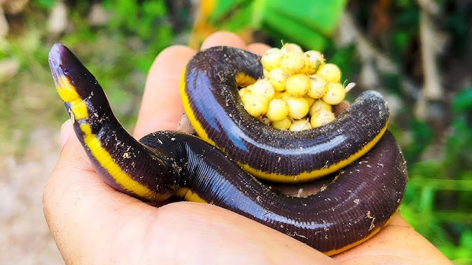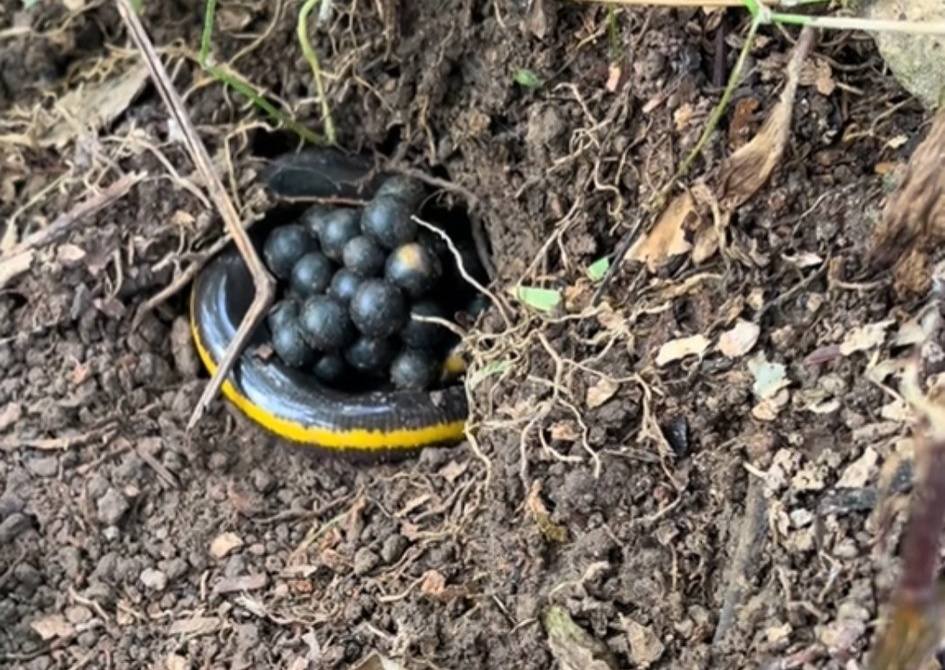 มันคืองูอะไร ตัวสีดำท้องสีเหลือง นอนขดไข่เอาไว้ ชาวเน็ตเผยคล้ายงูแต่ไม่ใช่งู