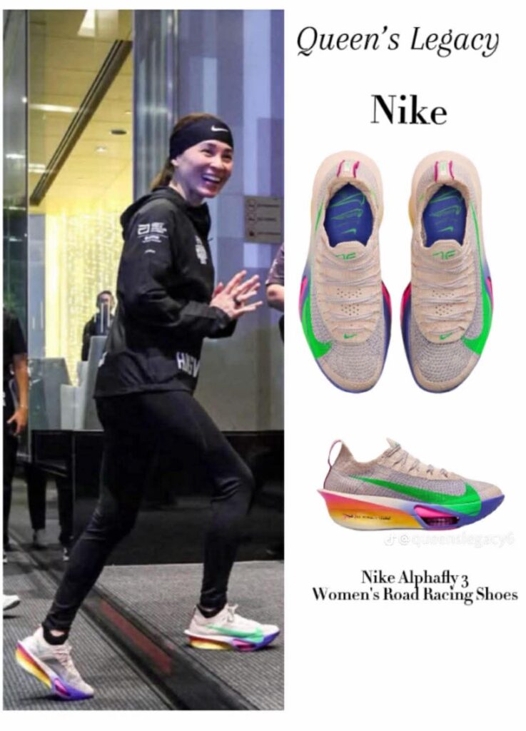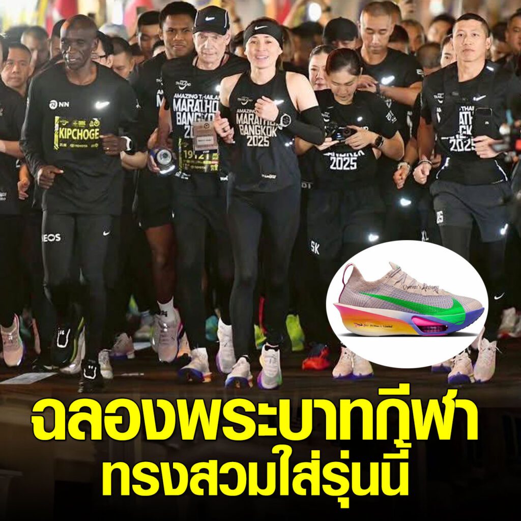 รายละเอียดฉลองพระบาทกีฬาที่ทรงสวมใส่ สมเด็จพระนางเจ้า ฯ พระบรมราชินี ทรงฉลองพระบาทกีฬา Nike Alphafly 3 รุ่นสี Eliud Kipchoge นายเอเลียด คิปโชเก สวมรองเท้ากีฬา Nike Vomero Premium