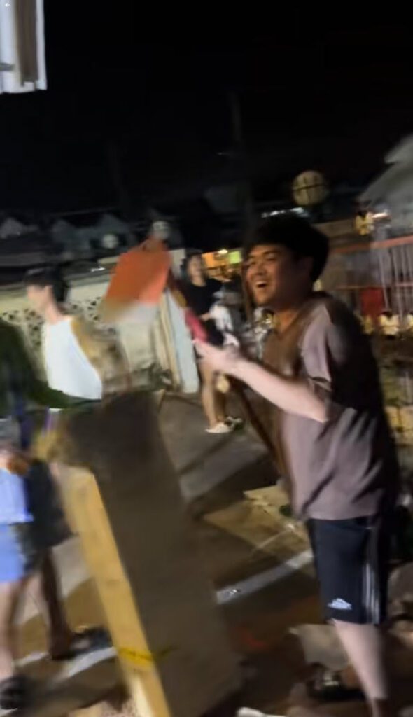 ใครจะไปคิดว่าจะมีคนเอาจอบมาห่อเป็นของขวัญจับฉลาก เกิดมาก็เพิ่งจะเคยเห็นเหมือนกัน ก็ยาวใหญ่ ก็คิดไปเยอะเลยว่าต้องรางวัลใหญ่แน่ๆ เลย แกะออกมาเท่านั้นแหละ เข่าทรุดเลย