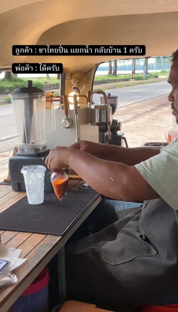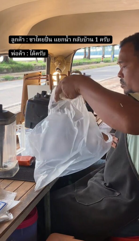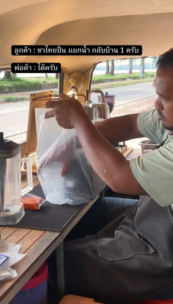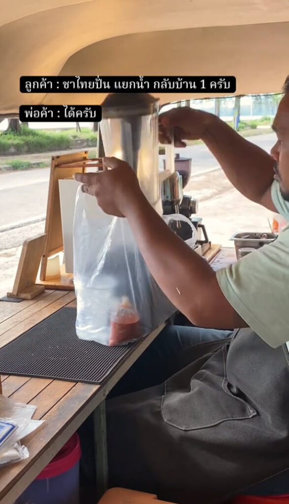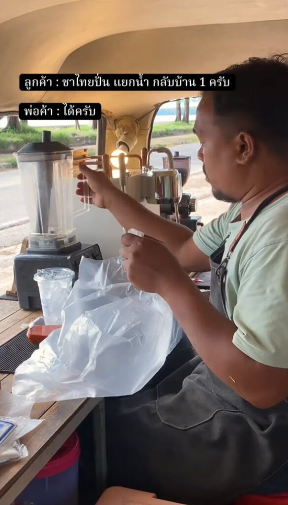 ล่าสุด ทางด้านผู้ใช้ TikTok @vancafe1 พ่อค้าร้านกาแฟ ลูกค้าสั่งชาไทยปั่น แยกน้ำ กลับบ้าน 1 ครับ พ่อค้าก็นั่งคิดอยู่นาน ว่าจะทำยังไงชาไทยปั่นแยกน้ำ แต่สุดท้ายพ่อค้าทำสิ่งที่ไม่มีใครคาดไม่ถึง ลูกค้าอึ้งแน่ โดยได้โพสต์ระบุว่า…