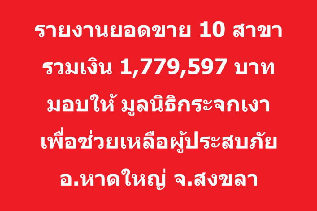 ตี๋น้อย ขอขอบคุณ FC ทุกท่าน ที่มาร่วม อิ่มท้อง อิ่มใจ อิ่มบุญ ยอดขายจาก 10 สาขา รวมเป็นเงิน 1,779,597 บาท มอบให้ กองทุนฉุกเฉินมูลนิธิกระจกเงา เพื่อช่วยเหลือผู้ประสบอุทกภัย อำเภอหาดใหญ่