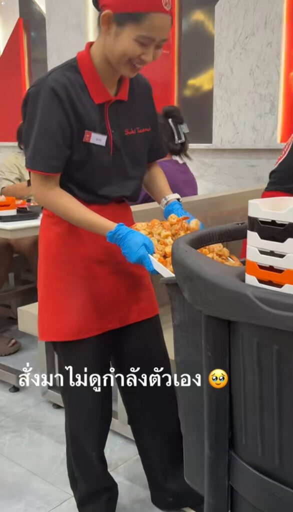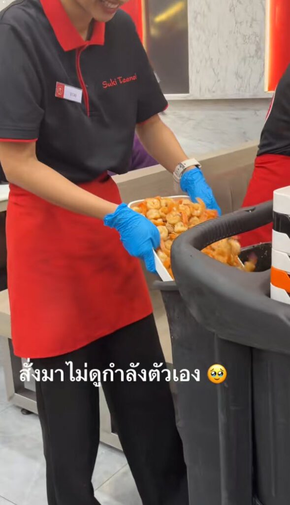 เมื่อวันที่ 26 ธันวาคม 2568 ผู้ใช้ TikTok @jifferst ได้เล่าเหตุการณ์จากร้านบุฟเฟต์ชื่อดังแห่งหนึ่ง โดยเผยภาพพนักงานกำลังเทกุ้งที่เหลือเต็มถาดลงในถังขยะ พร้อมตั้งคำถามถึงพฤติกรรมของลูกค้าว่า เหตุใดจึงสั่งอาหารมาเกินความสามารถในการกิน จนเหลือทิ้งในปริมาณมากเช่นนี้