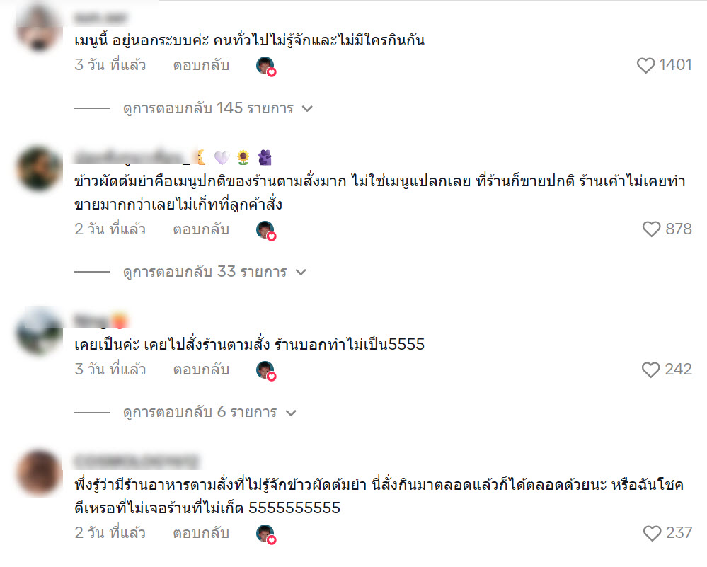 ข้าวผัดต้มยำคือเมนูปกติของร้านตามสั่งมาก ไม่ใช่เมนูแปลกเลย ที่ร้านก็ขายปกติ ร้านเค้าไม่เคยทำขายมากกว่าเลยไม่เก็ทที่ลูกค้าสั่ง