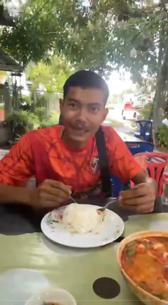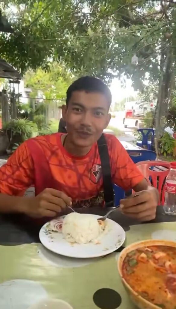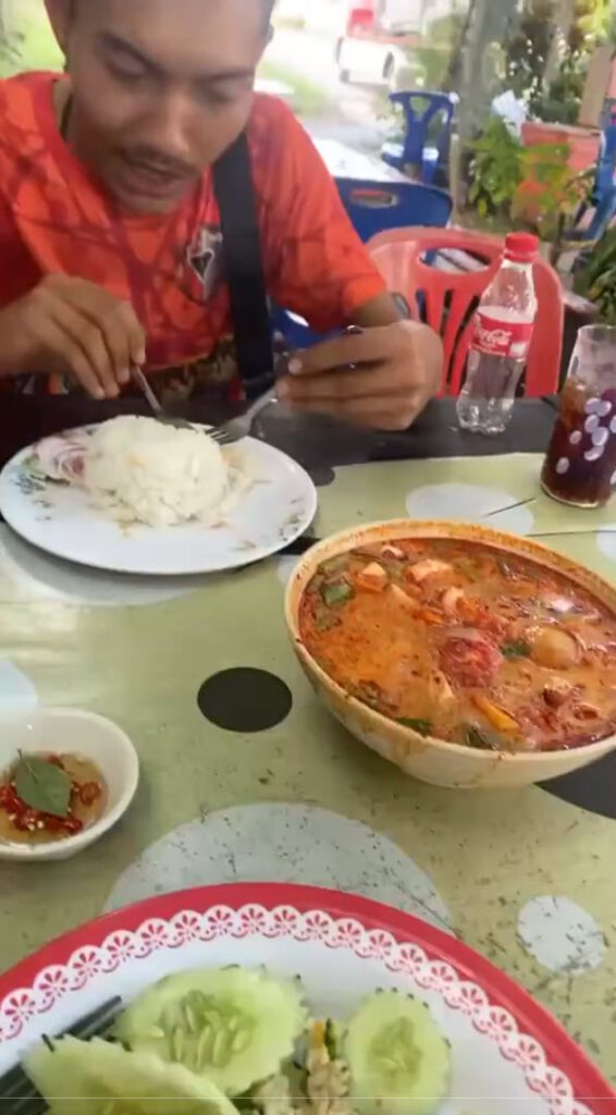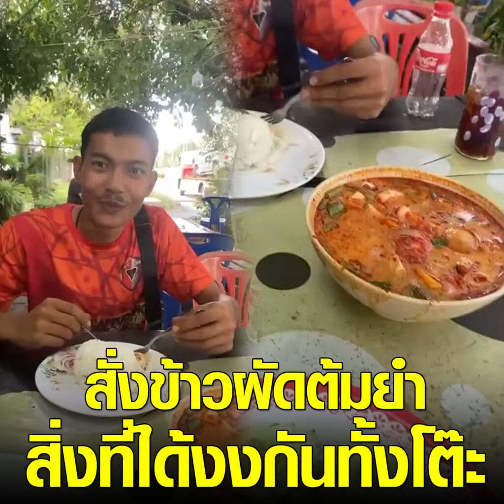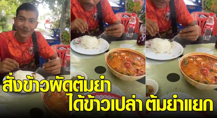 หนุ่มสั่งเมนูข้าวผัดต้มยำ มานั่งกินที่ร้านอาหารตามสั่ง