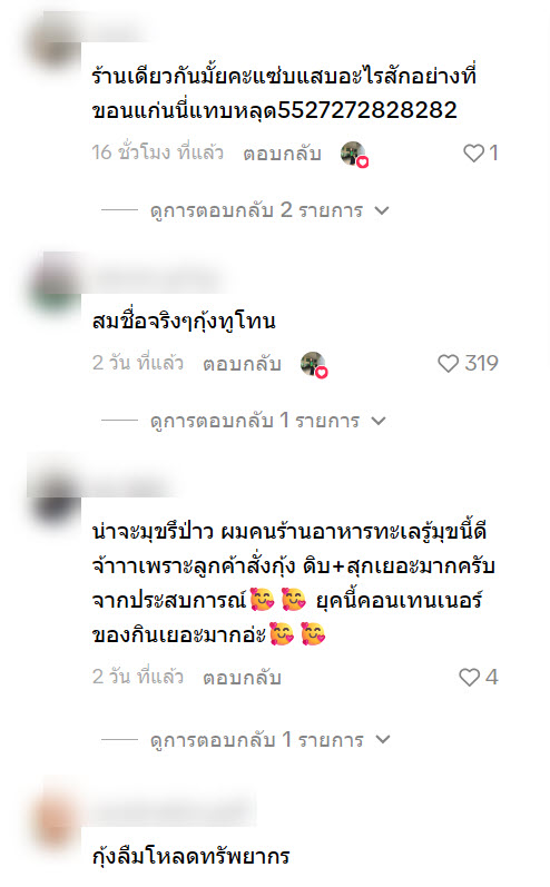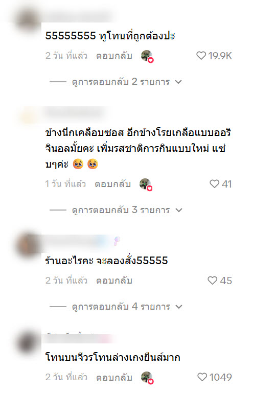 ล่าสุด ทางด้านผู้ใช้ TikTok @bamboobaba1 ได้โพสต์วิดีโอคลิป เมื่อสั่งยำมะม่วงกุ้งทูโทน พอถึงบ้านแกะดูเท่านั้นแหละจะรั่ว ตรงตามชื่อเมนูเป๊ะ ยำมะม่วงกุ้งทูโทน กุ้ง 2 สี เพราะว่า สุกครึ่งตัว อีกครึ่งตัวไม่สุก ก็เลยกลายเป็น 2 สีทูโทน เป็นยังไงนั้นตามไปดู