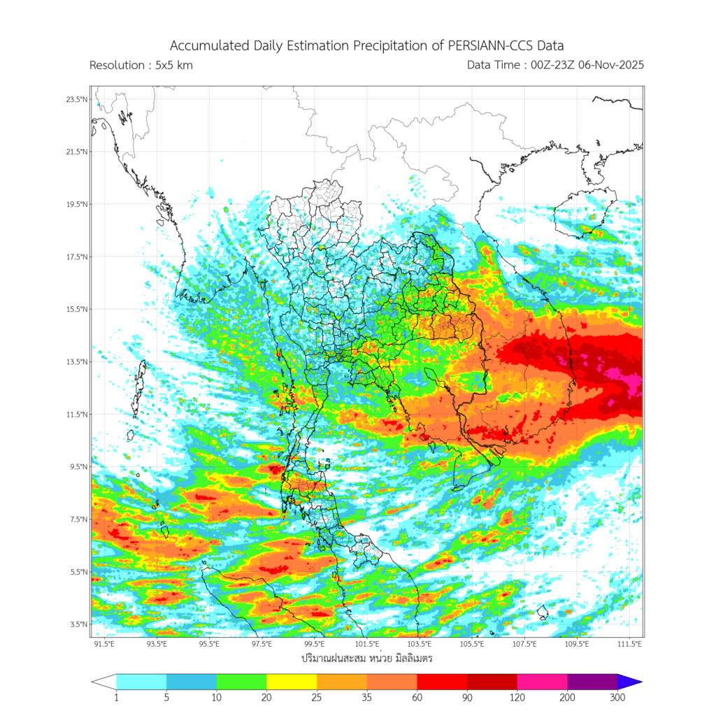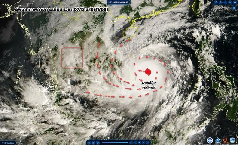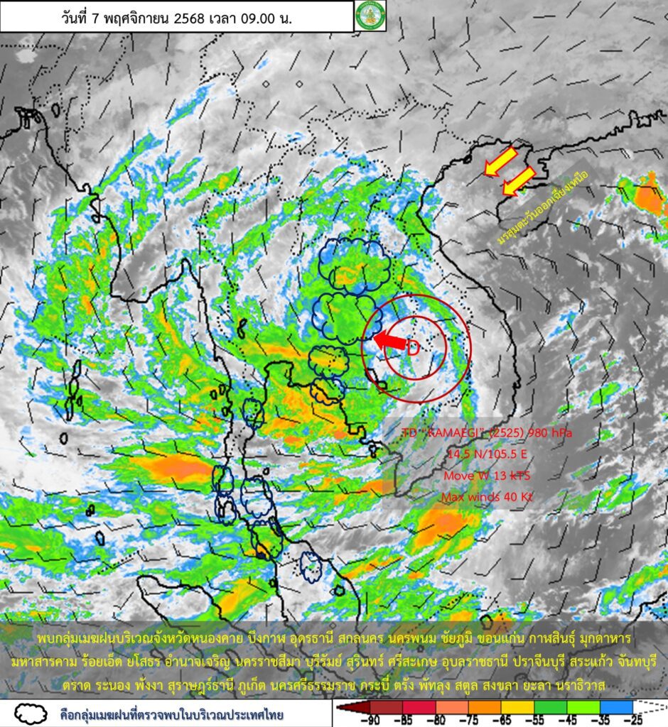 วันนี้ (7 พ.ย.2568) กรมอุตุนิยมวิทยา พยากรณ์อากาศ 24 ชั่วโมงข้างหน้า ฝนตกหนักถึงหนักมากบางพื้นที่ บริเวณจังหวัดอุบลราชธานี ยโสธร อำนาจเจริญ ศรีสะเกษ สุรินทร์ และบุรีรัมย์ เนื่องจากอิทธิพลของ พายุไต้ฝุ่น“คัลแมกี” (KALMAEGI) บริเวณเมืองกอนตูม ประเทศเวียดนามได้อ่อนกำลังลงเป็นพายุโซนร้อนกำลังแรงแล้ว หลังจากนั้นมีแนวโน้มจะอ่อนกำลังลงเป็นพายุดีเปรสชันเคลื่อนผ่านประเทศลาว โดยจะเคลื่อนเข้าปกคลุมบริเวณอำเภอโขงเจียม จังหวัดอุบลราชธานี ในช่วงบ่ายของวันนี้ (7 พ.ย .68) ก่อนจะอ่อนกำลังลงเป็นหย่อมความกดอากาศต่ำกำลังแรงตามลำดับ