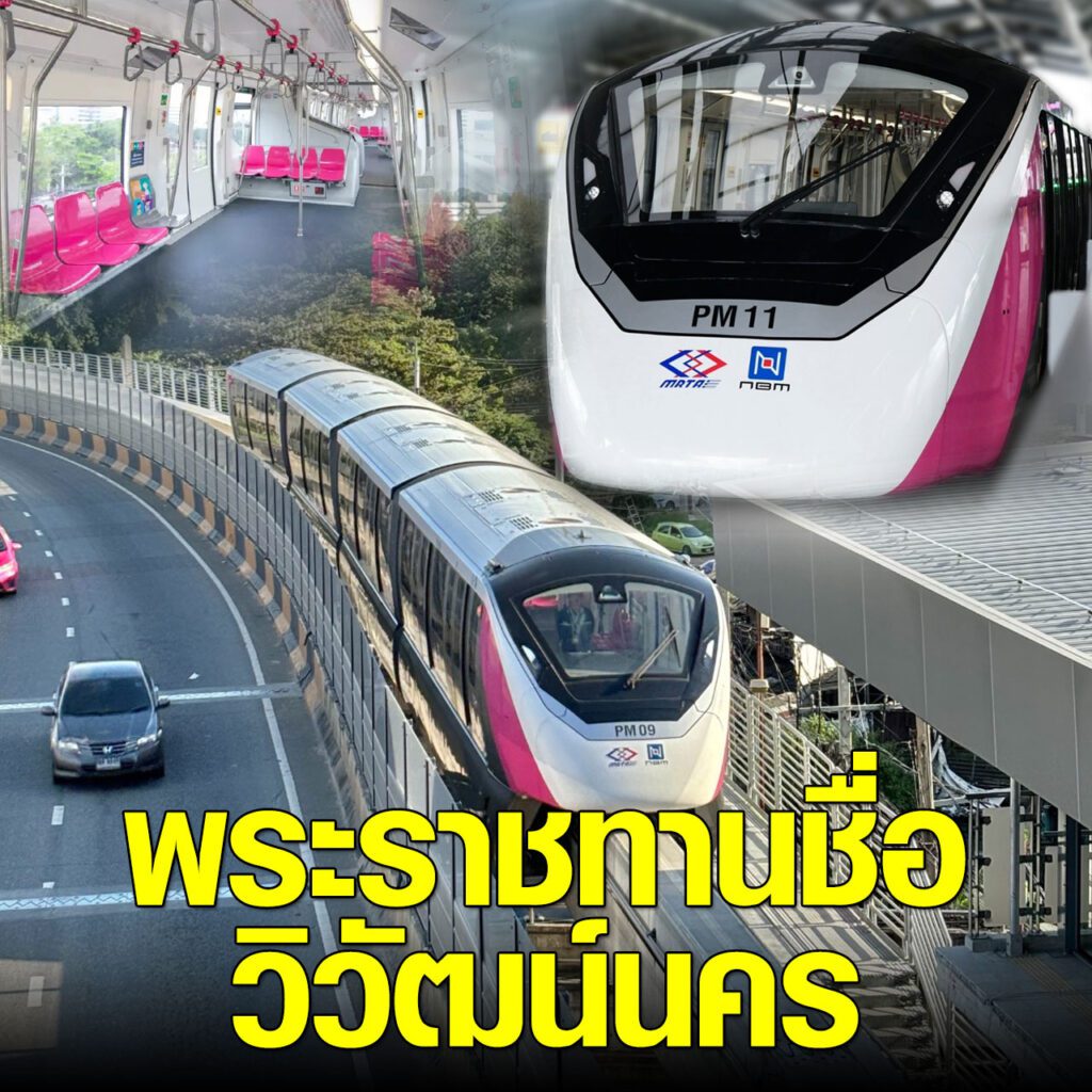 ล่าสุด (7 ม.ค. 69) การรถไฟฟ้าขนส่งมวลชนแห่งประเทศไทย เปิดเผยว่า พระบาทสมเด็จพระเจ้าอยู่หัว ทรงพระกรุณาโปรดเกล้าโปรดกระหม่อมพระราชทานชื่อเส้นทางรถไฟฟ้ามหานคร (MRT) สายสีชมพู ว่า "วิวัฒน์นคร" (อ่านว่า วิ-วัด-นะ-คอน) Wiwat Nakhon มีความหมายว่า "ความเจริญของเมือง"