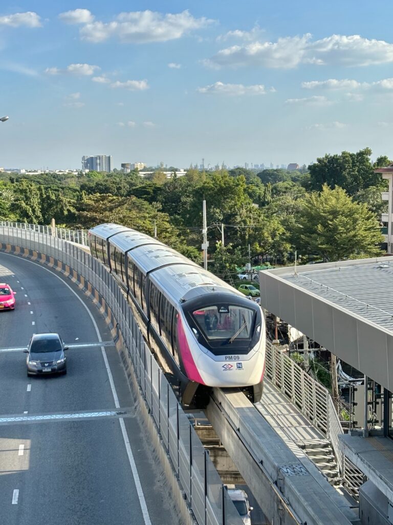 รถไฟฟ้าสายสีชมพู (Pink Line) เป็นอีกหนึ่งเส้นทางรถไฟฟ้าโมโนเรลที่สำคัญของกรุงเทพมหานครและปริมณฑล ทำหน้าที่เชื่อมโยงพื้นที่สำคัญตั้งแต่จังหวัดนนทบุรีฝั่งตะวันตกเฉียงเหนือ ไปจนถึงเขตมีนบุรีทางฝั่งตะวันออกของกรุงเทพฯ ด้วยระยะทางกว่า 34.5 กิโลเมตร และสถานียกระดับมากถึง 30 สถานี ทำให้การเดินทางข้ามเมืองเป็นเรื่องง่ายและรวดเร็วกว่าเคย